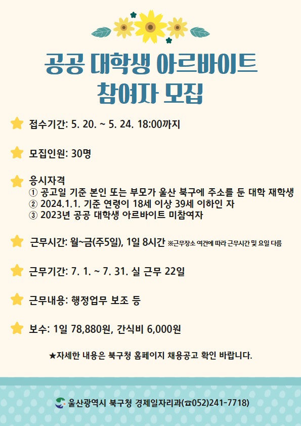 2024년 공공대학생 아.르.바.이.트. 참여자 모집 안내