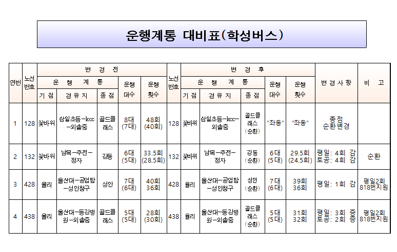128번, 132번, 428번, 438번 버스노선 변경사항 알림(3월 1일 토요일 시행)