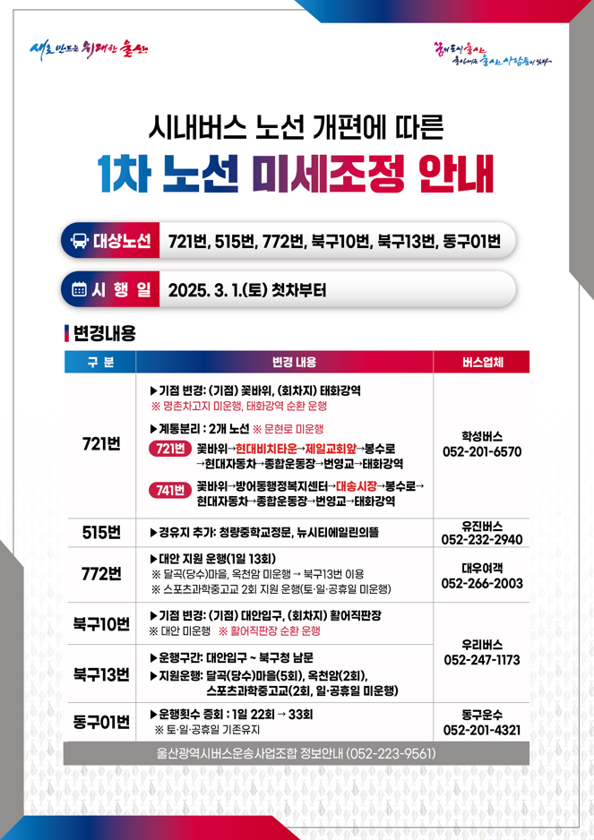 시내버스 노선 개편에 따른 1차 노선 미세조정 안내