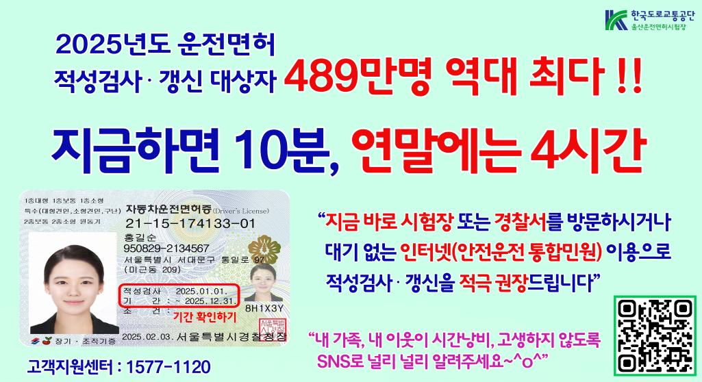 2025년 운전면서 적성검사 갱신대상자 갱신 안내