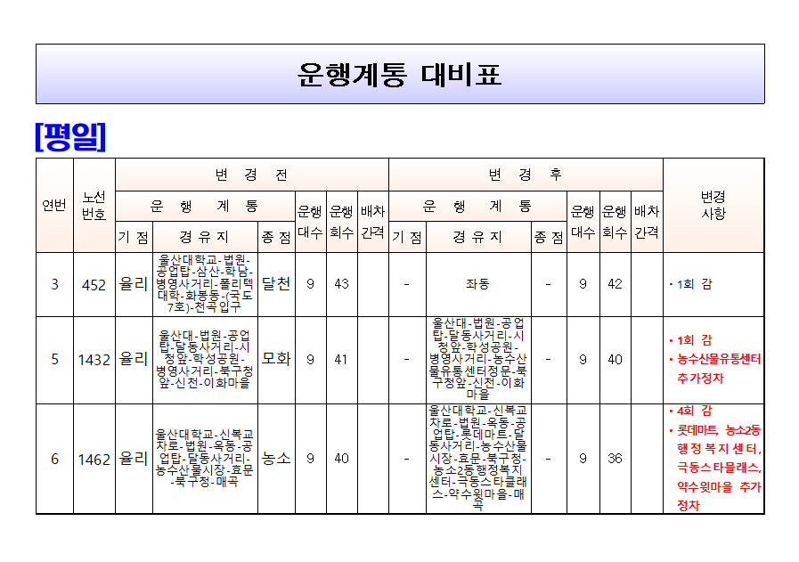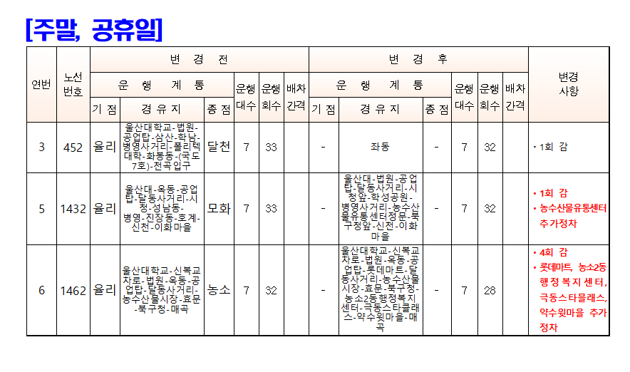 여객자동차운송사업계획 변경 인가 통보(452번, 1432번, 1462번)(25.5.17.시행)