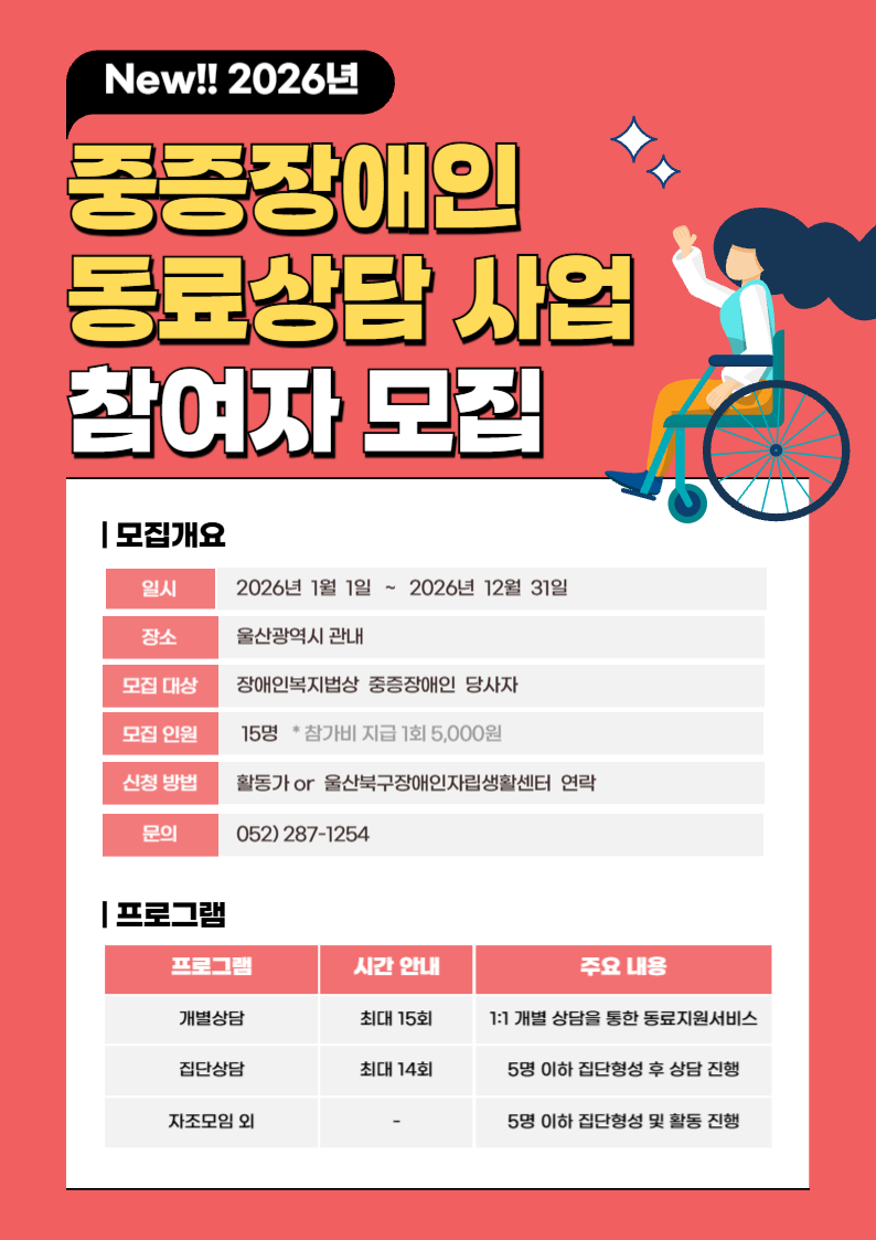 2026년 중증장애인 동료상담 사업 참여자 모집 안내