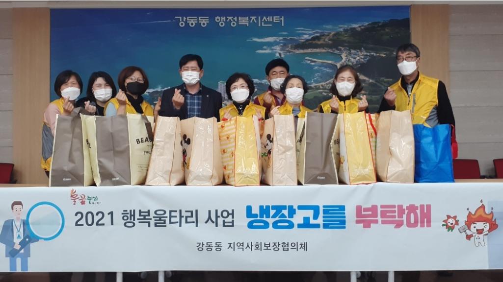 강동동 지역사회보장협의체는 2021년 3월 16일부터 2021년 행복울타리 사업 '냉장고를 부탁해'를 본격적으로 추진합니다. ‘냉장고를 부탁해’는 독거노인이나 장애인 세대 등 안전한 먹거리 확보가 어려운 취약계층을 월1회 정기적으로 방문하여 냉장고에 보관된 식재료를 살펴보고 유통기간이 경과된 식재료를 교체하거나 제철 밑반찬을 제공하는 것으로 10월까지 추진될 계획입니다.