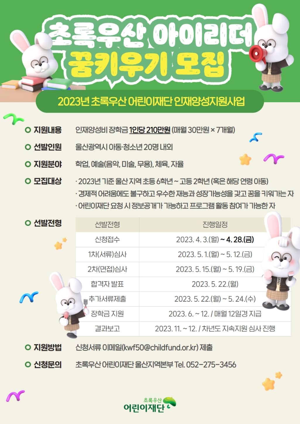 [초록우산 어린이재단] 2023년 인재양성지원 초록우산 아이리더(꿈키우기) 모집 안내