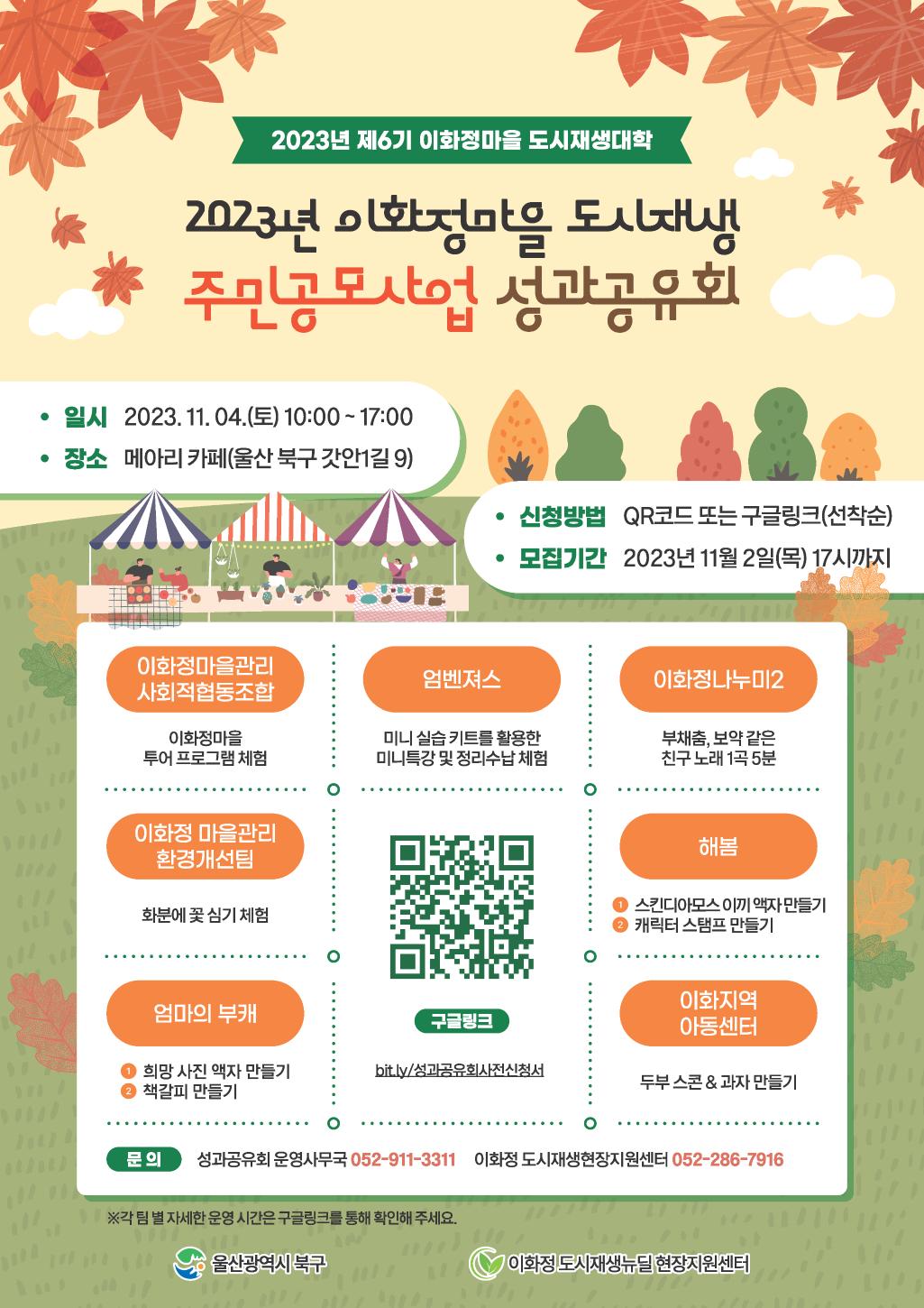 2023년 이화정마을 도시재생 주민공모사업 성과공유회 안내