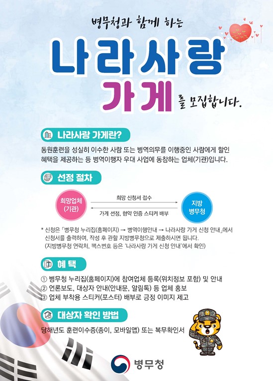 병무청과 함께하는 '나라사랑 가게' 모집 안내