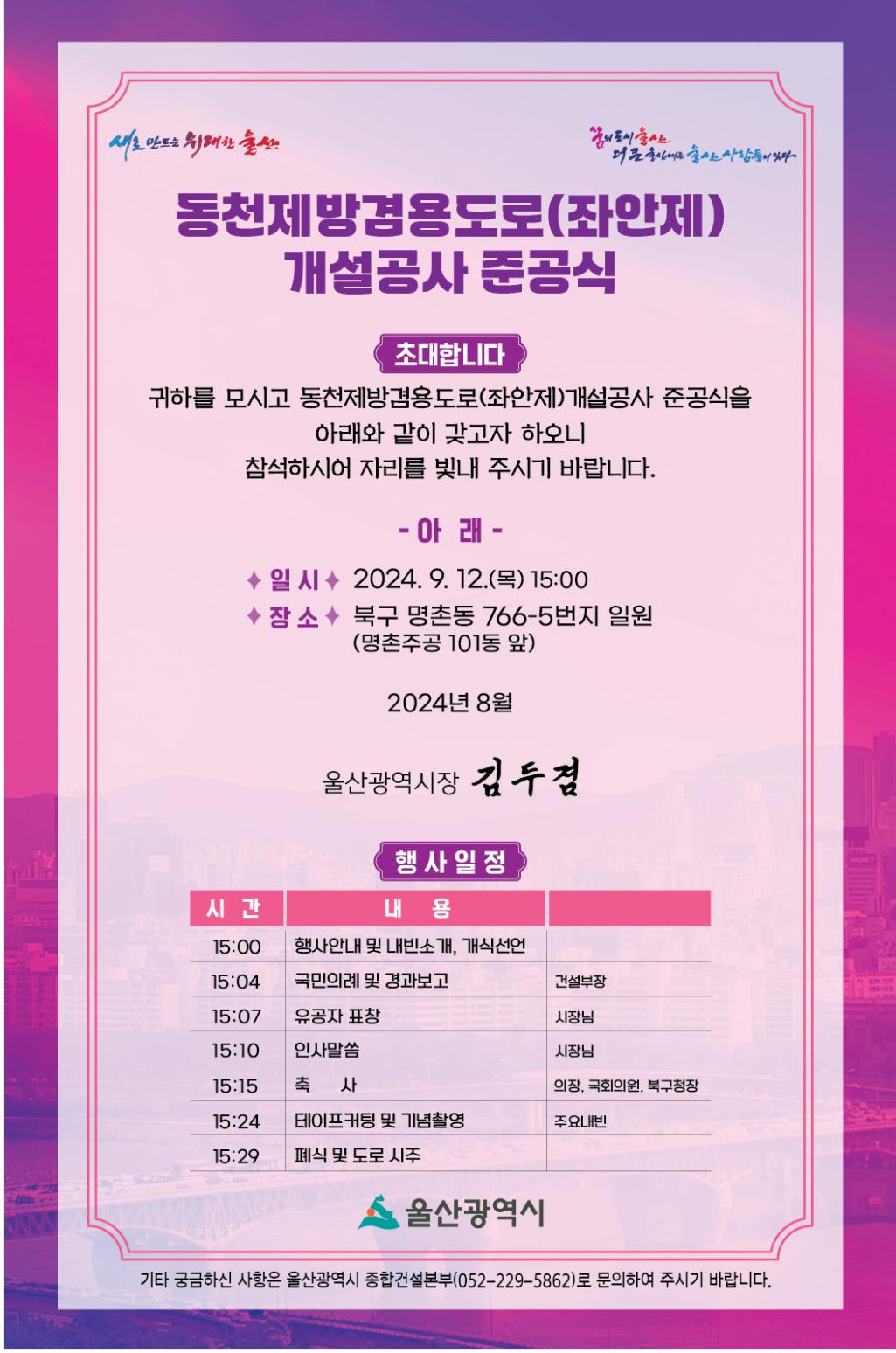 동천제방겸용도로(좌안제)개설공사 준공식 안내