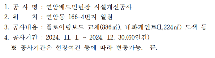 공사시행알림(연암배드민턴장 시설개선공사)