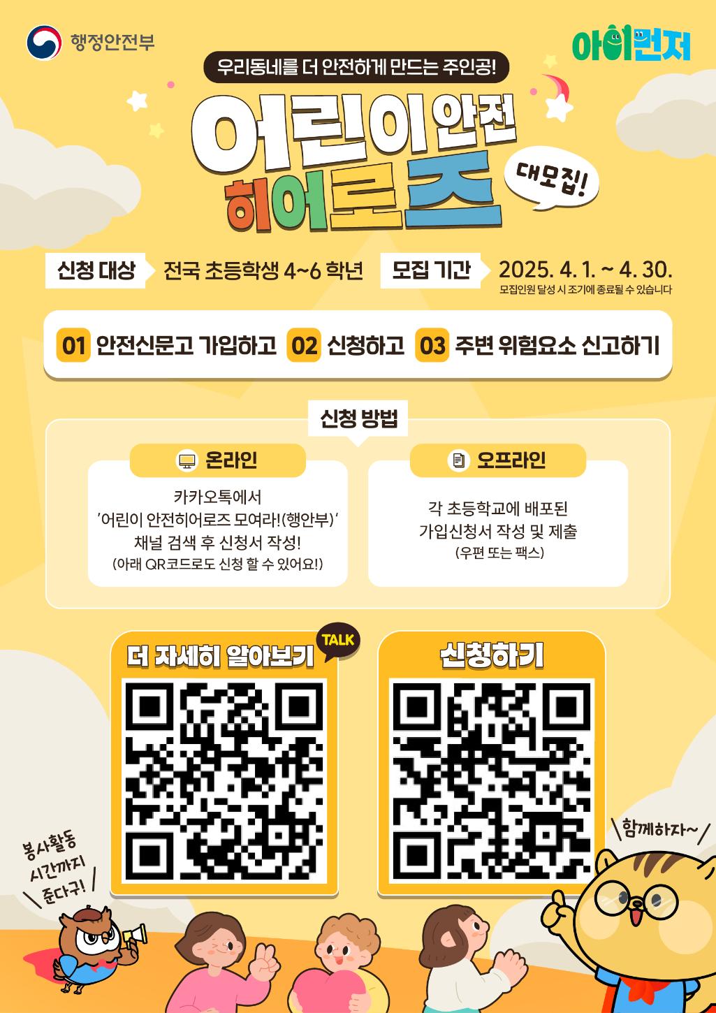 2025년 어린이 안전히어로즈 신규회원 모집 홍보