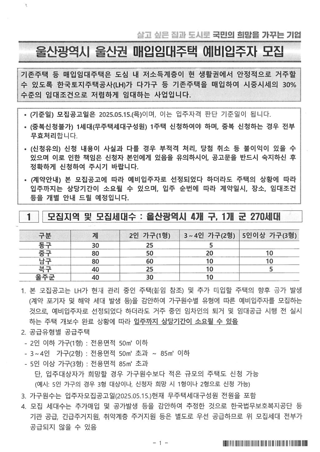 | 2025년 울산권 매입임대주택 예비입주자 모집 안내 | |||