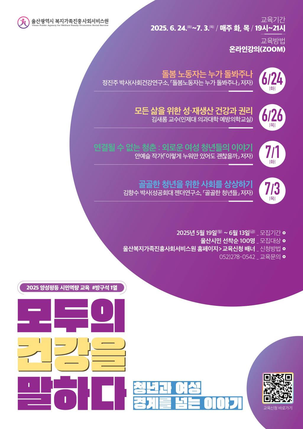 [모두의 건강을 말하다 - 청년과 여성 경계를 넘는 이야기] 2025 양성평등 시민역량교육 참여 안내