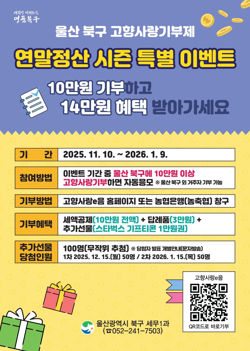 울산 북구 고향사랑기부제 연말정산 시즌 특별 이벤트 안내