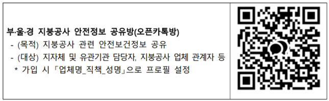 이에, 고용노동부 울산지청에서는 지붕공사 추락사고 감축을 위해 안전보건정보(사고사례,안전수칙, 재정지원 안내문 등)를 신속히 공유하고자 '지붕공사 안전정보 공유방(오픈카톡방)을 운영하오니 관련 기관 및 부서담당자, 업체 관계자께서는 아래 QR코드를 스캔하여 공유방에 참여해 주시기 바랍니다.