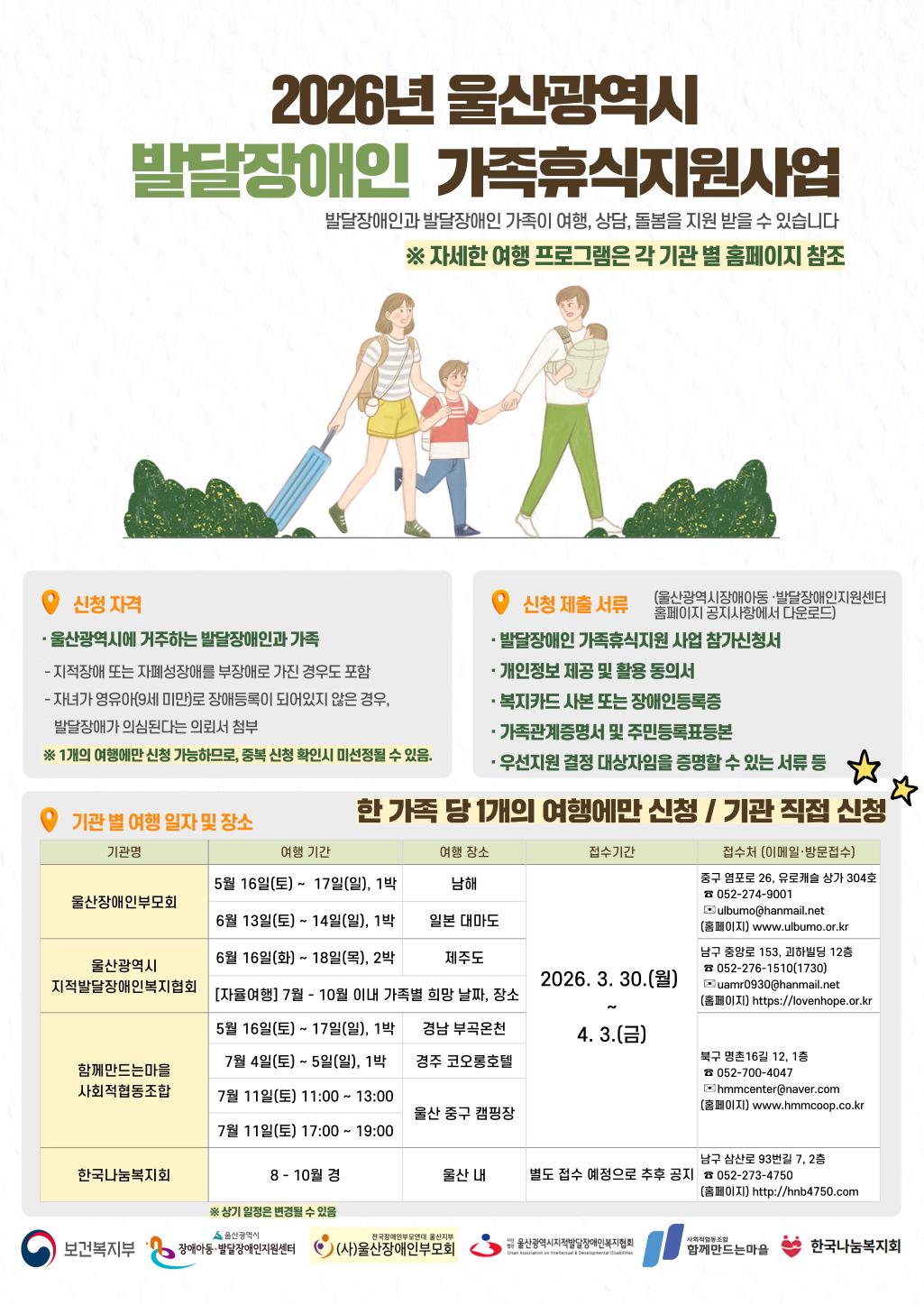 2026년 울산광역시 발달장애인 가족휴식지원사업 참여자 모집 안내