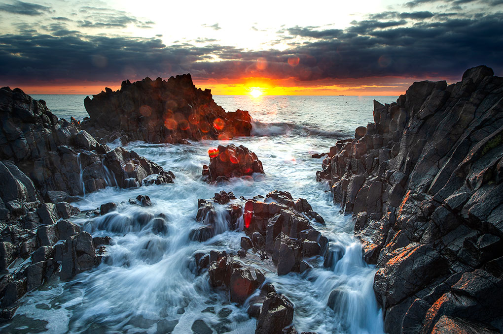 강동 몽돌해안의 끝자락에 위치하여, 사람의 손길이 채 닿지 않아 몽돌이 잘 보존되어 있으며, 미역철이 되면, 곽암이라 불리는 검은 바위 옆으로 미역을 말리고 있는 어촌마을의 모습도 볼 수 있다. 산과 바다를 끼고 이어져 드라이브 코스로 으뜸이며 깨끗한 몽돌과 푸르른 바다에 눈길을 뺏기게 된다.
