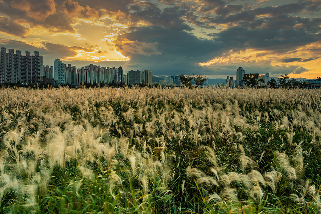 중구, 남구, 북구에 걸쳐있는 억새 군락지 중 명촌동 일대가 가장 넓은 면적을 자랑하고 있다. 어른 키보다도 큰 억새밭 사이 산책로와 자전거도로가 조성되어 있으며 친환경 생태공간으로 가족·연인 등 산책코스로 인기가 많으며 접근성이 용이하다.