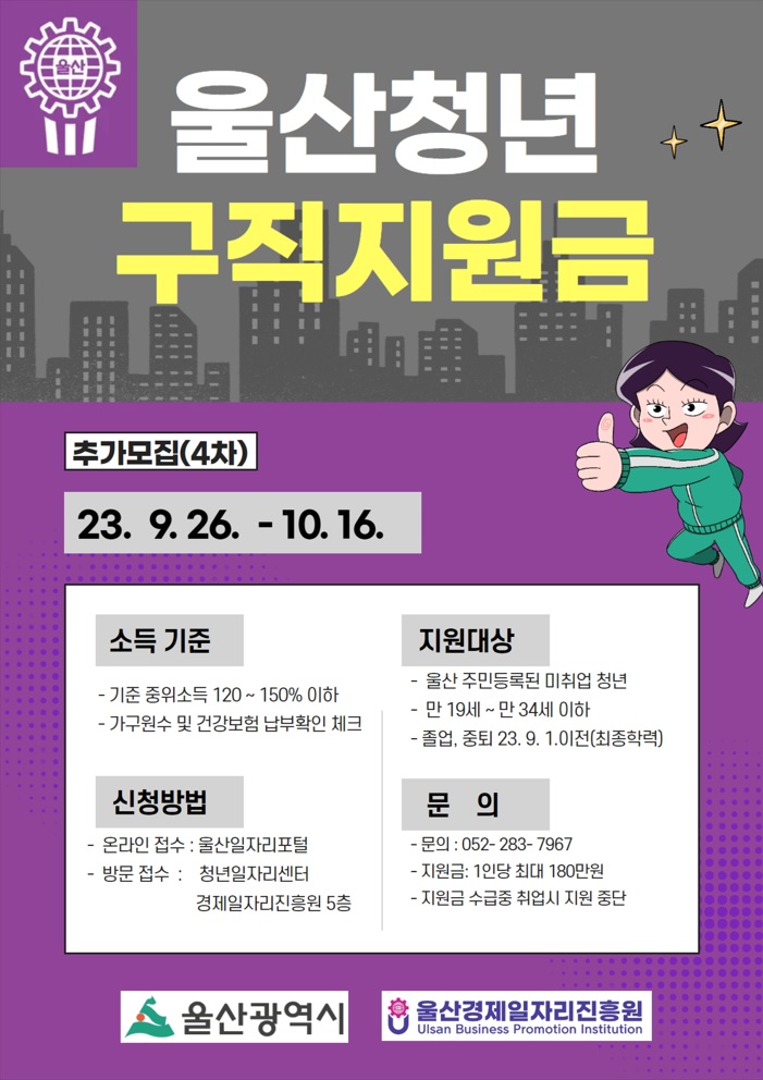 | [2023 울산청년 구직지원금] 참여자 추가 모집(4차) | |||||