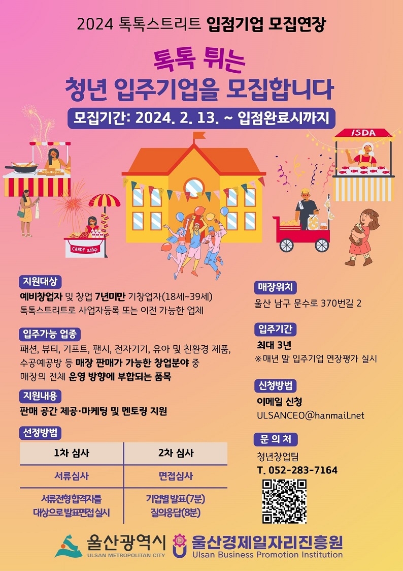 | [울산경제일자리진흥원] 2024 톡톡스트리트 입주기업 추가모집 재안내 | |||||
