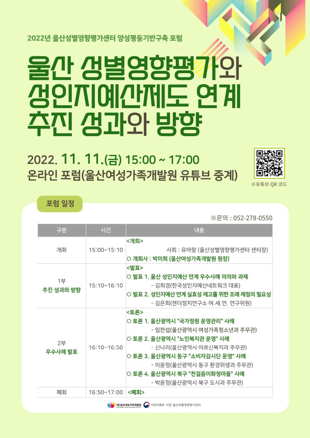 | 2022년 울산성별영향평가센터 양성평등기반구축포럼 안내 | |||||