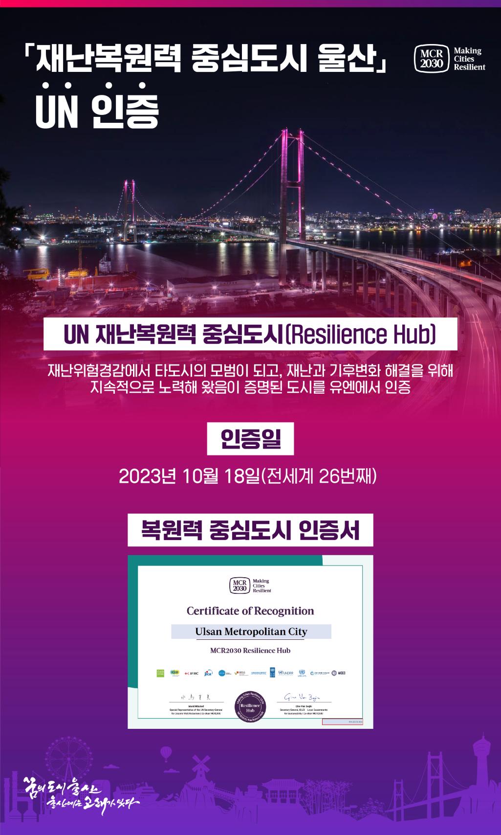 | 『재난복원력 중심도시 울산』 UN 인증 | |||