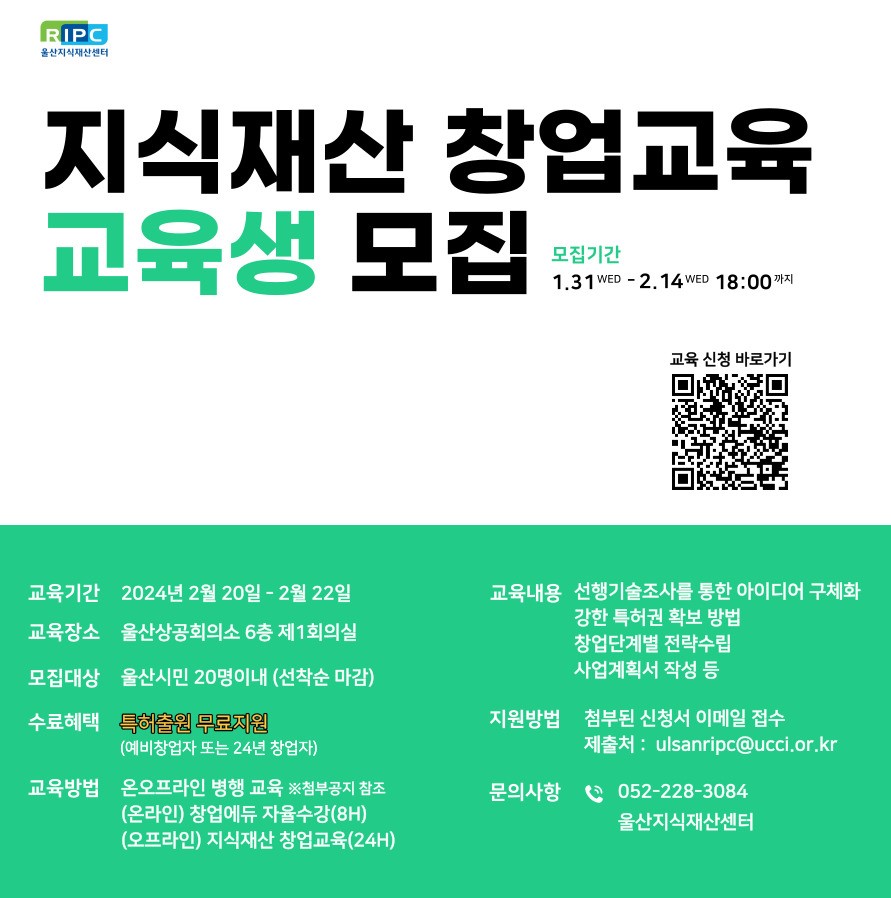 | 2024년 제1차 지식재산창업교육 참가자 모집 안내 | |||||