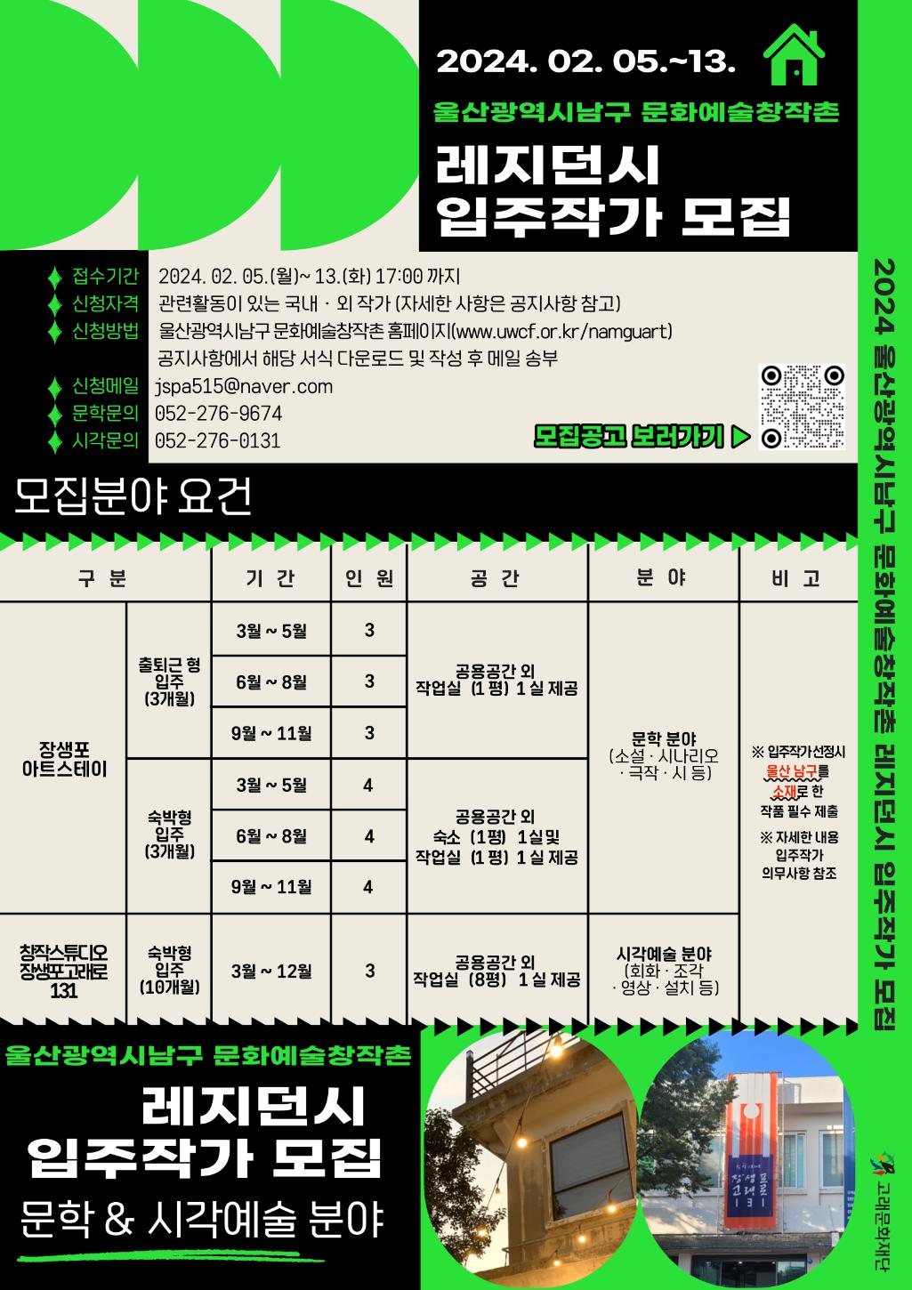 | 2024 문화예술창작촌 레지던시 입주작가 모집 안내 | |||