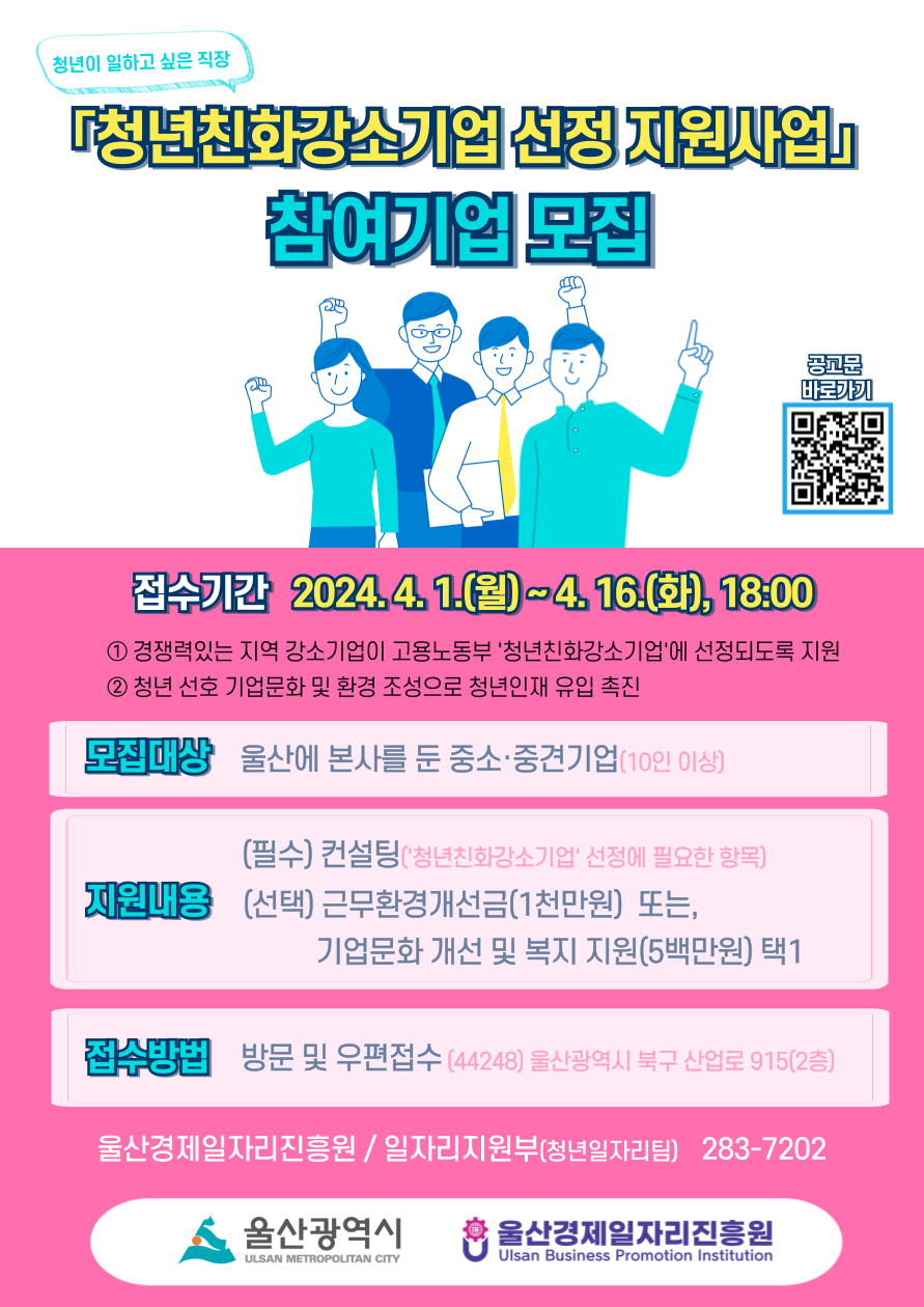 | 청년친화강소기업 선정 지원사업 참여기업 모집 안내 | |||||