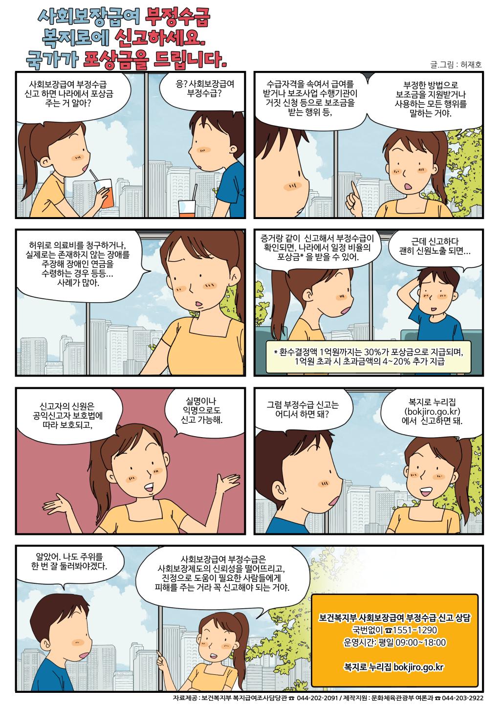 - 사회보장급여 부정수급 복지로에 신고하세요 - 보건복지부 사회보장급여 부정수급 신고 상담 * 국번없이 ☎ 1551-1290 / 운영시간 : 평일 09:00 ~ 18:00 * 복지로 누리집 bokjiro.go.kr < (금융위원회) [내보험찾아줌] 숨은 보험금 11조 2천억원 찾아가세요 >