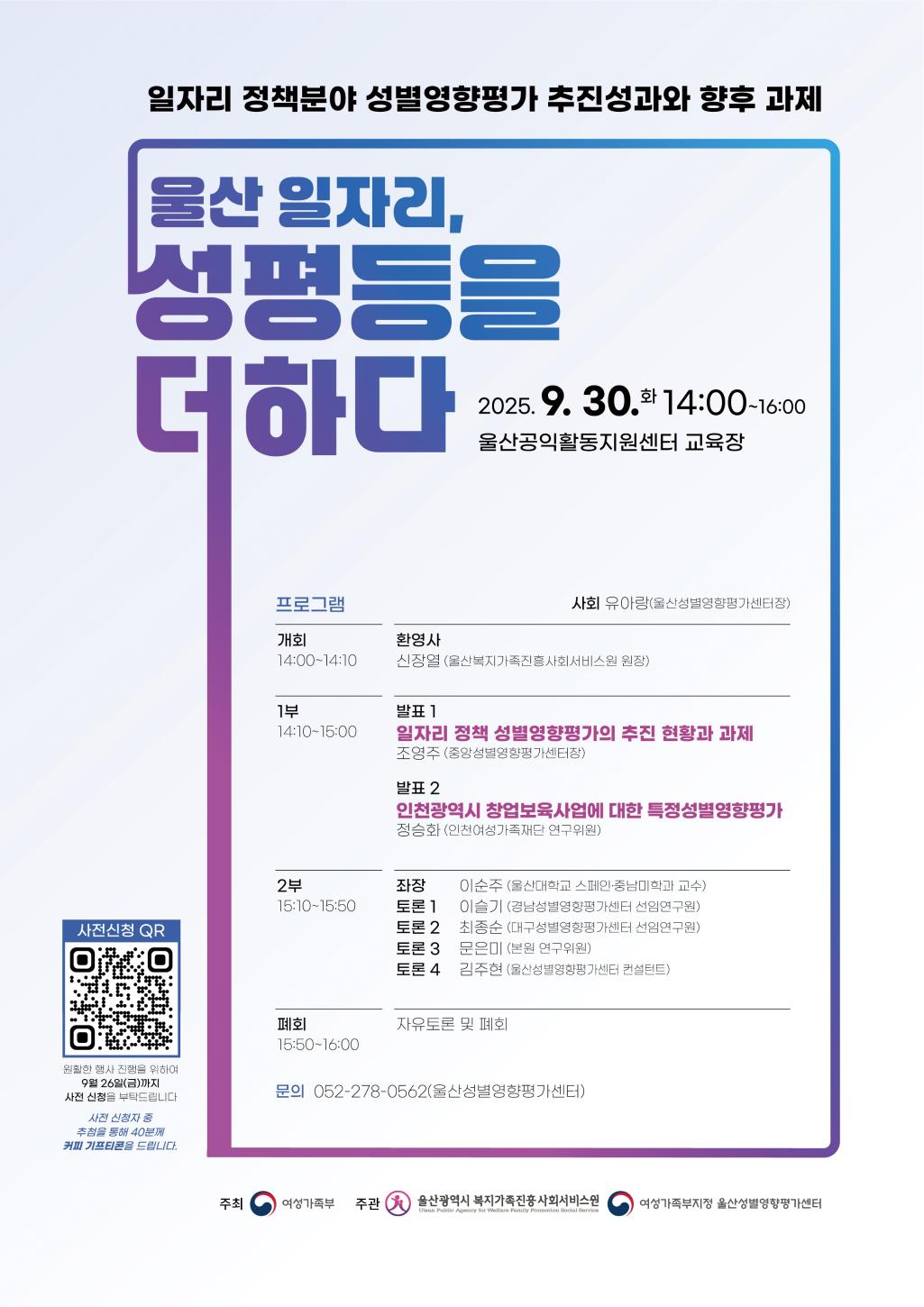 | 2025년 울산성별영향평가센터 양성평등기반구축 포럼 개최 안내 | |||