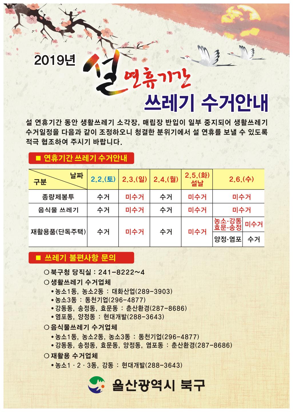 | 2019년 설 연휴기간 쓰레기 수거안내 | |||