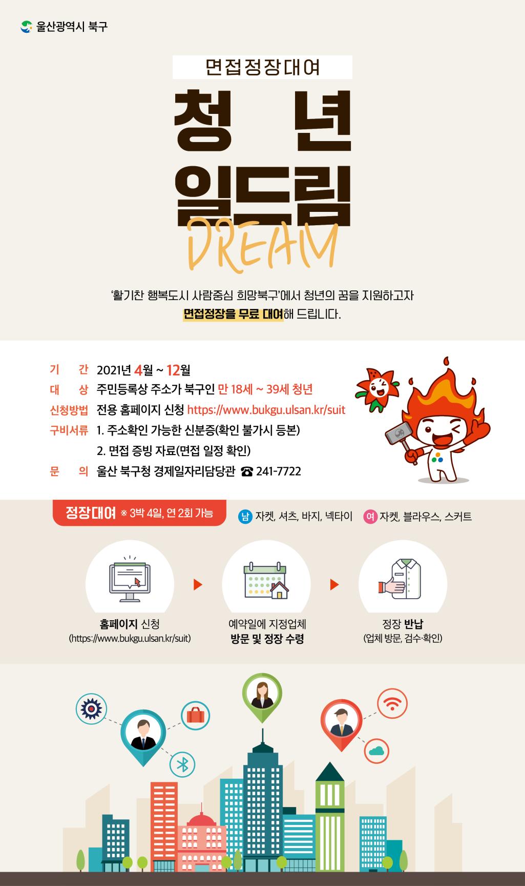 | 2021년 청년 면접정장 대여 "일드림(Dream)"사업 실시 (웹홈페이지 또는 모바일 예약 필수_ 매주화요일 업체 휴무) | |||