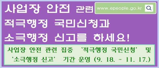 | 사업장 안전 관련 적극행정 및 소극행정 집중 신청 및 신고기간 운영 안내 | |||