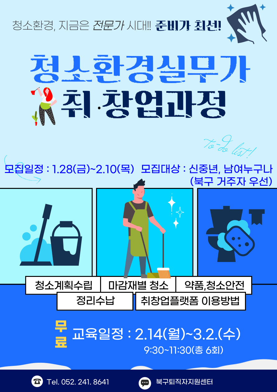 | [울산북구퇴직자지원센터]신중년 취창업지원"청소환경실무가 "교육생 모집 | |||