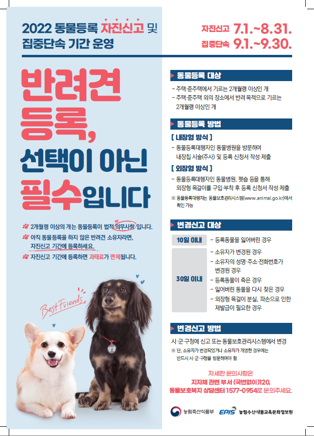 | 2022년 동물등록 자진신고 및 집중단속 기간 운영 | |||