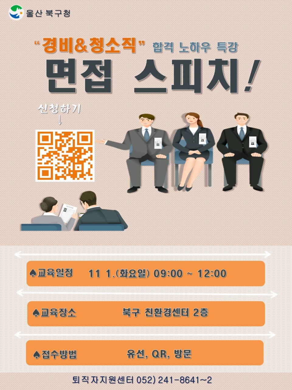| 퇴직자 취업준비특강"경비·청소직 면접스피치" 교육생 모집 | |||