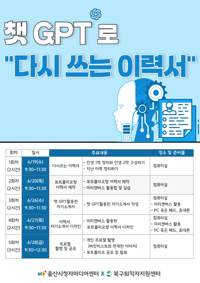 | 퇴직자취업지원교육과정"챗-GPT×다시 쓰는 이력서" 교육생 모집 | |||