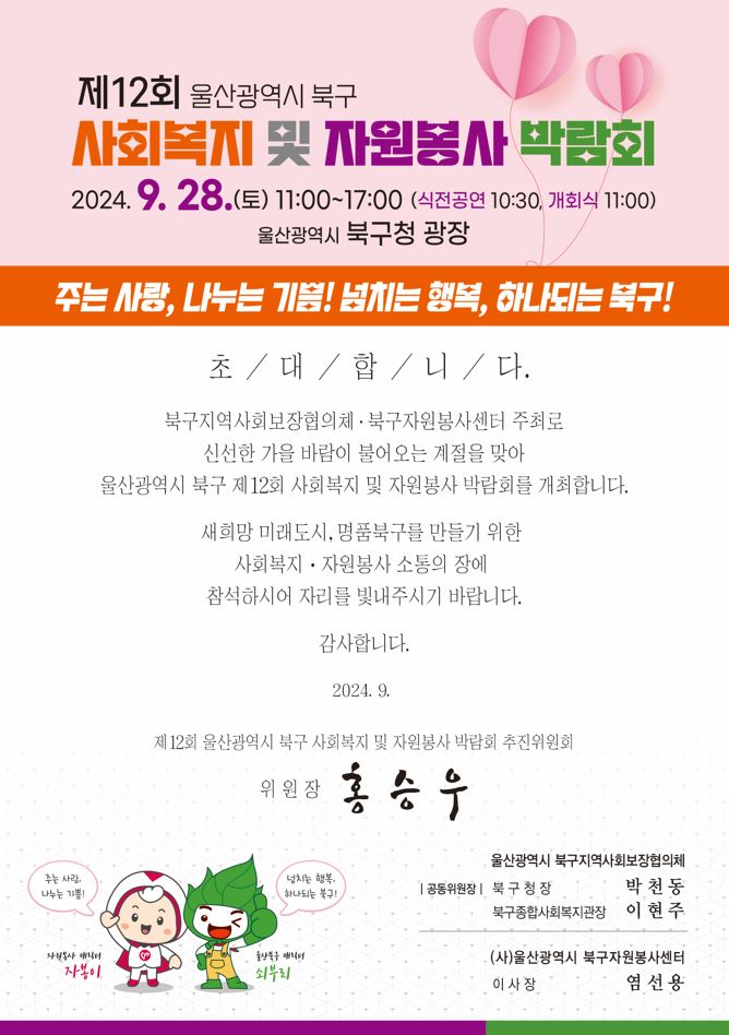 | 제12회 울산광역시 북구 사회복지 및 자원봉사 박람회 개최 안내 | |||||