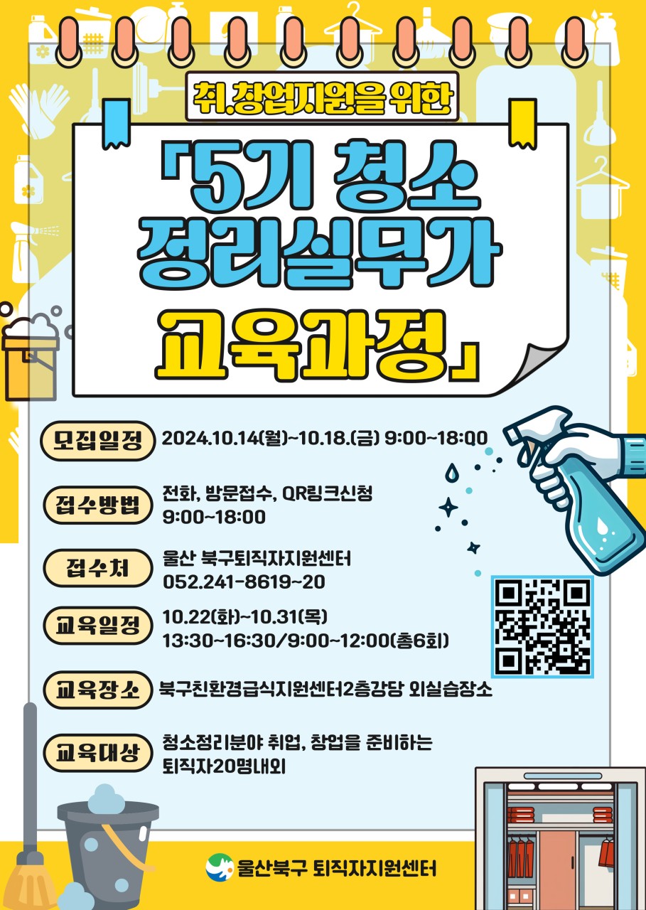 | 울산북구퇴직자지원센터 "퇴직자의 취창업지원을 위한 청소정리실무가 교육생모집" | |||