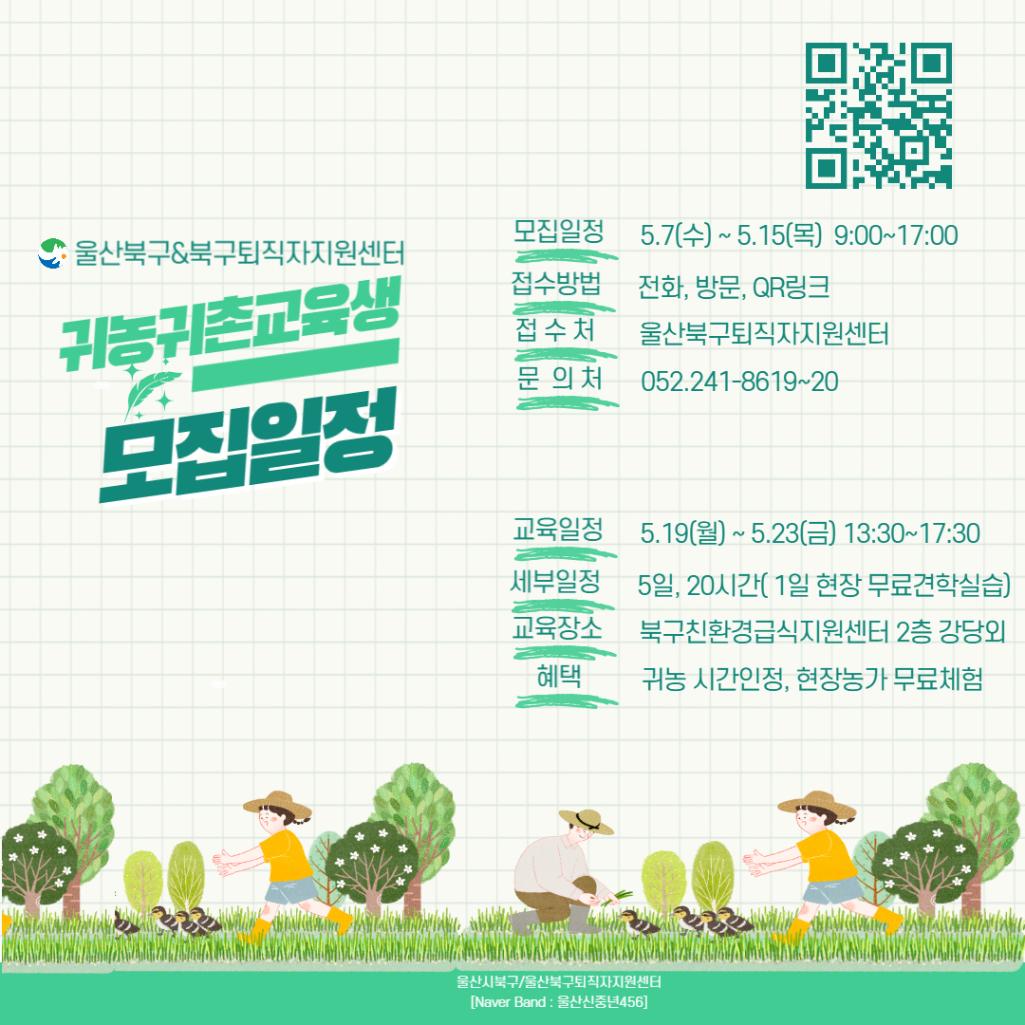 [북구퇴직자지원센터 교육생 모집] 신중년 퇴직자분들의 귀농, 귀촌 궁금증을 해결해드리고