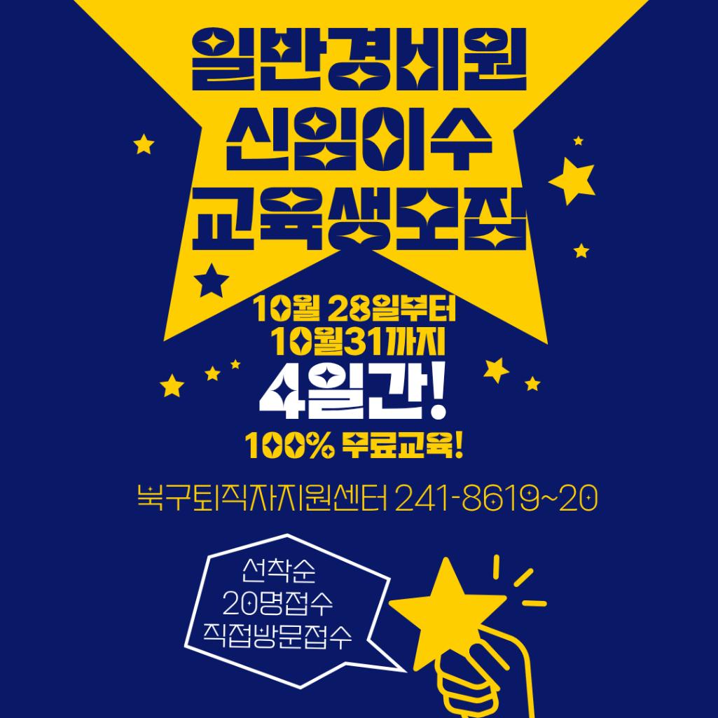 | 북구퇴직자지원센터_퇴직자 취업지원과정"일반경비원 신임 이수 교육생 모집" | |||