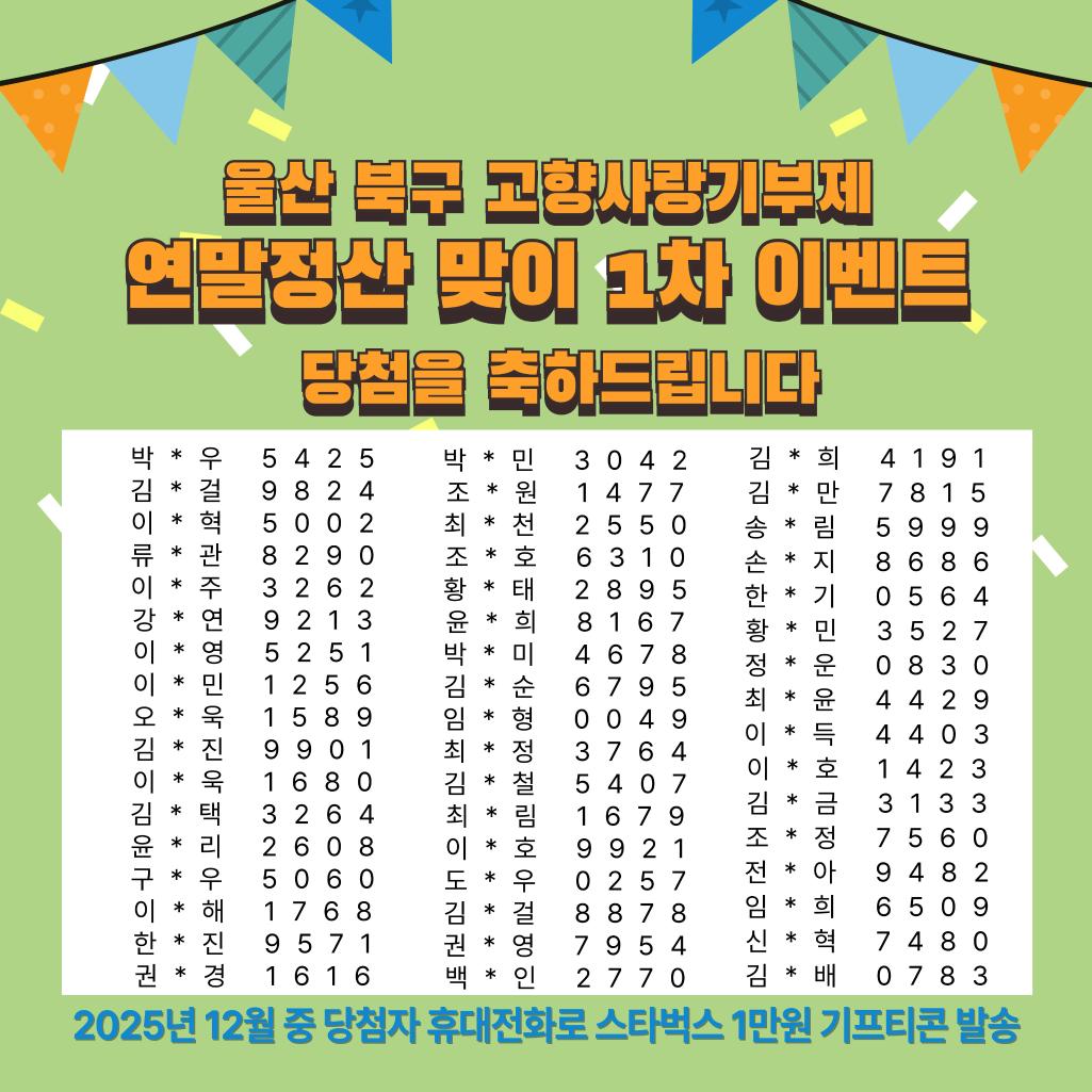| 고향사랑기부제 연말정산 1차 이벤트 당첨자 발표 | |||