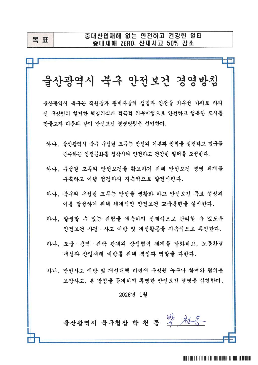| 「울산광역시 북구 안전·보건에 관한 목표 및 경영방침」 | |||||