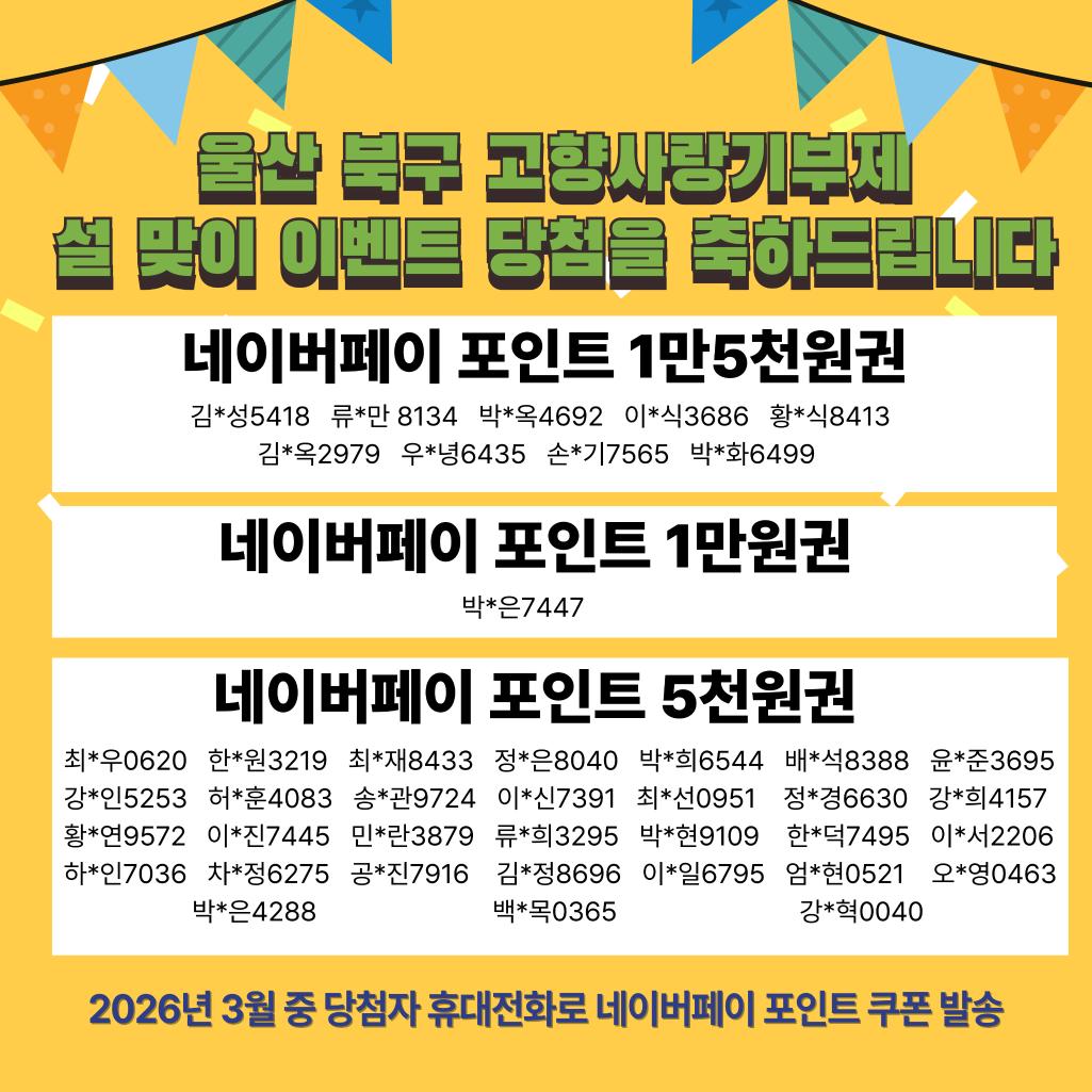 2026년 설 맞이 울산 북구 고향사랑기부제 이벤트 당첨을 축하드립니다.