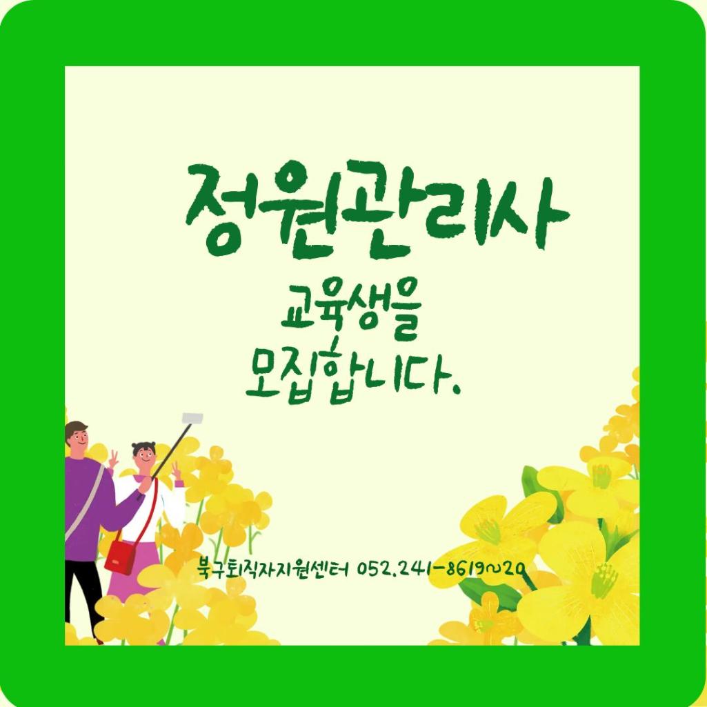 | 울산북구퇴직자지원센터_취업지원과정 " 9기 정원관리사 교육생"을 모집합니다 | |||