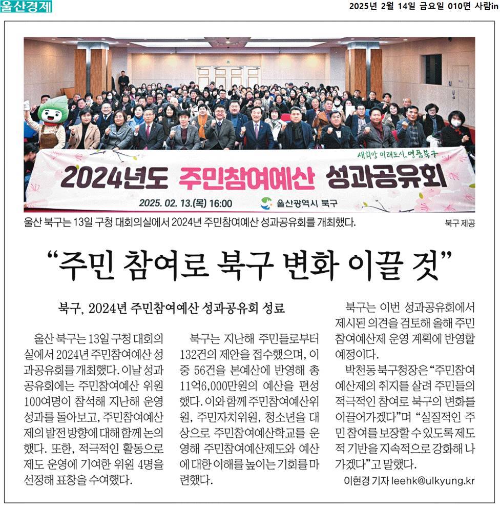 | 2024년 주민참여예산제 성과공유회 개최결과 | |||