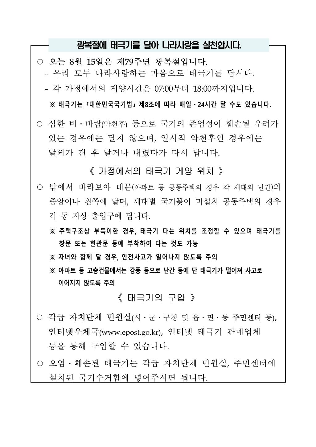 제79주년 광복절 나라사랑 태극기 달기 홍보
