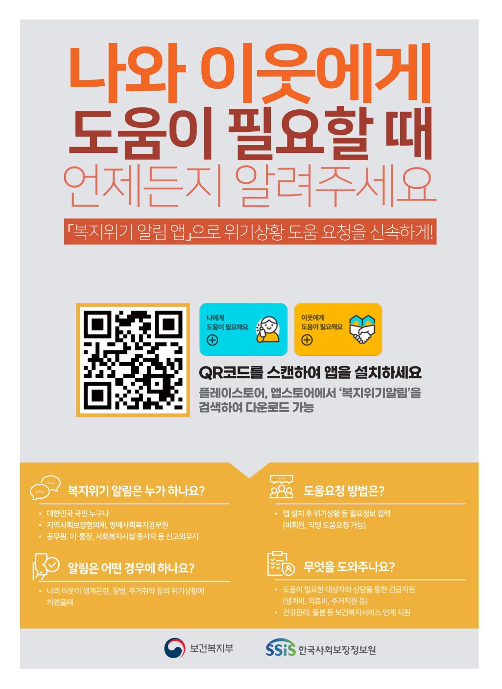 "복지위기 알림앱"으로 위기상황 도움을 쉽고 빠르게