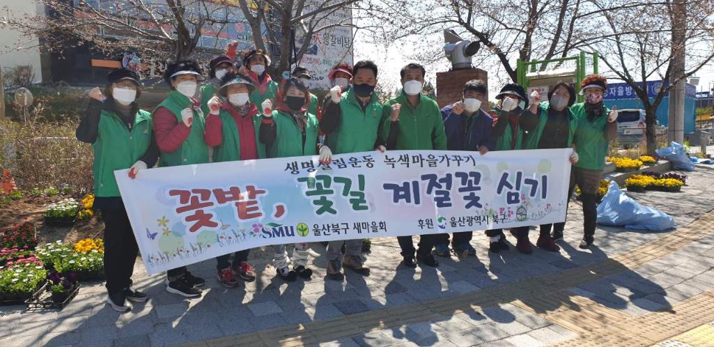 - 일 시 : 2021. 3. 22.(월) 13:00 - 장 소 : 호계 철길사거리 일대 - 내 용 : 봄 초화류 식재 - 참여인원 : 13명(새마을협의회원 및 새마을 부녀회원) |