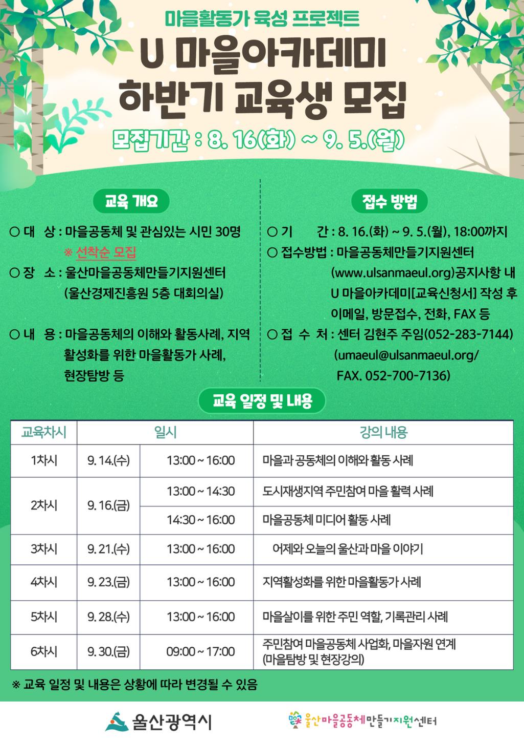 2022년 하반기 U마을아카데미 교육생 모집공고