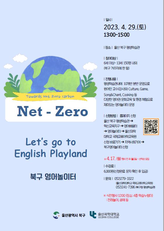 평생학습관 북구 영어놀이터 신청안내